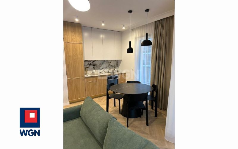 Wyjątkowy apartament z jedną sypialnią, przestronnym salonem z aneksem kuchennym i dużym tarasem, wyposażony w meble i sprzęt AGD.